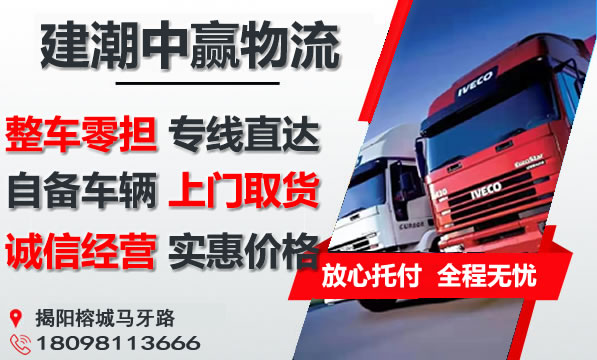 揭阳到巴中物流专线是建潮中赢物流主营重点物流线路之一,提供4.2-17.5米整车包车运输,零担专线,可上门取货,量大免费提送货;揭阳到巴中货运专线价格实惠,欢迎来电咨询。